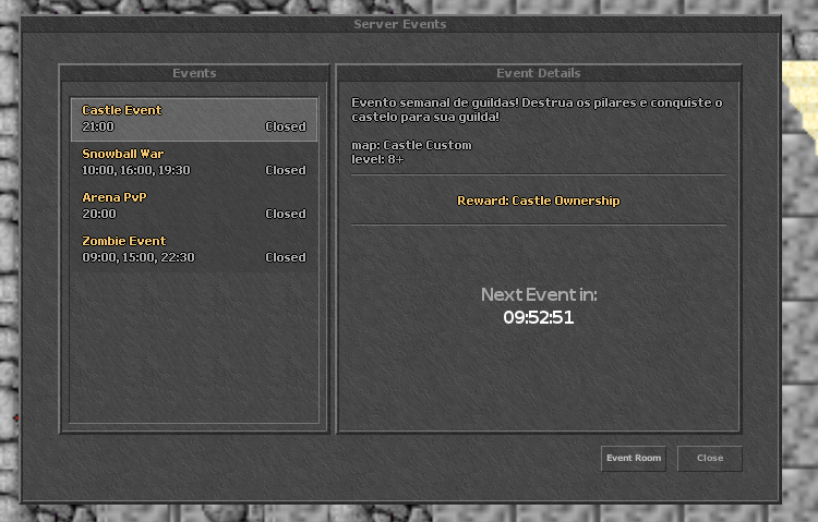 Esta rolando algum evento? Talvez, de uma olhada no painel de eventos, lá tem tudo que e necessário para você ficar sabendo, e tem mais, pelo painel de eventos você pode ir para a sala de eventos!